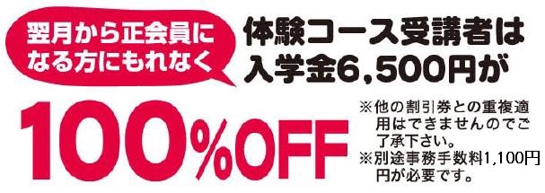 | 授業体験者募集中! | 月4回コース | 5,200円 | 消費税・ 傷害保険料込 |